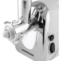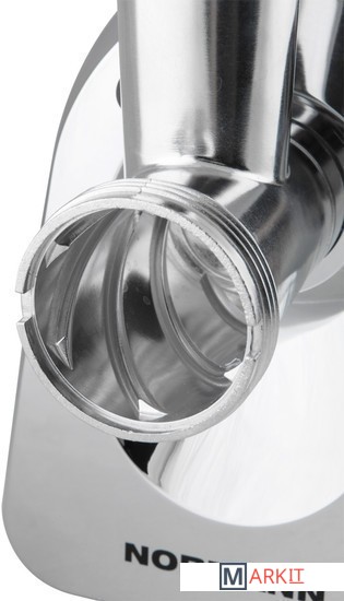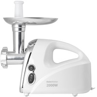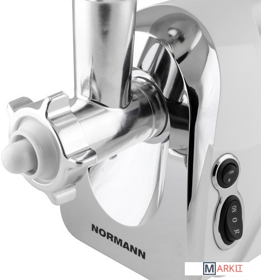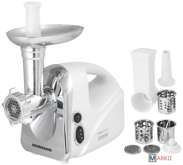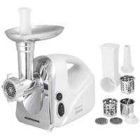 Производительная электрическая мясорубка с функцией реверса, удобной быстросъемной горловиной и теркой для овощей с насадками.