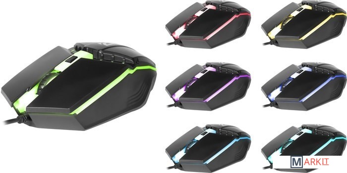 7 цветов подсветки. Рифленое колесо прокрутки.
