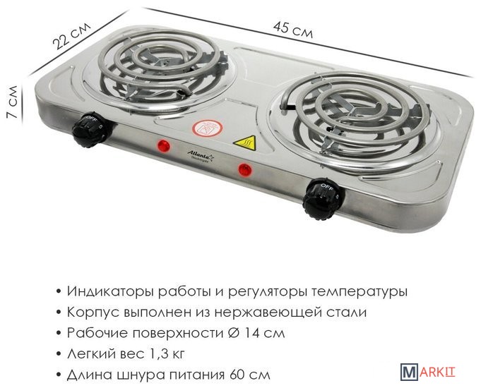 | Спиральные конфорки | 2 (диаметром: 140 мм) |