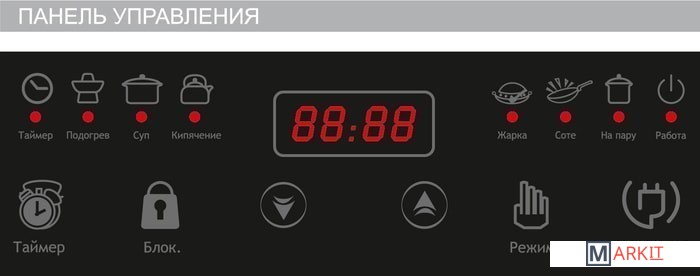 | Режимы приготовления | 6 (суп, кипячение, соте, подогрев, на пару, жарка) |