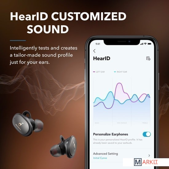 Обновленная модель наушников Anker SoundCore Liberty 2 Pro.Главной особенностью является функция анализа звука поступающего в ушную раковину HearID. Другими словами, наушники персонально подстраивают свое звучание под каждого отдельного пользователя путем особого тестирования. Происходит генерация и воспроизведение определенных частот на различной громкости, а пользователю предстоит указать (в фирменном приложении для смартфона) слышит он звук на данной частоте или нет. Кроме того, наушники оснащены программируемым пультом управления.