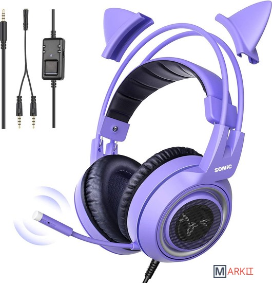 Игровые наушники с микрофоном SOMIC G951S - это проводная гарнитура розового цвета со съёмными кошачьими ушками. Эта модель имеет очень стильный и красивый внешний вид, который очень популярен среди игроков женского пола. Подключаются к компьютеру с помощью длинного шнура с 3.5-миллиметровым коннектором. Модель обеспечивает чистое и комфортное звучание и позволяет услышать во время игр малейшие шорохи и передвижения. Геймерские наушники имеют продуманную форму и удобное оголовье, что позволяет носить их в течении долгого времени. Кнопки регулировки размещены в корпусе, подключаются к компьютеру через USB порт. НЕТ ПОДСВЕТКИ! **Технические характеристики:** - Торговая марка: SOMIC. - Модель: G951S. - Штекер: 3,5 мм mini jack. - Длина кабеля: 2,2 м. - Вес изделия: 400 г. **Микрофон** - Диаметр: 4 * 1,5 мм. - Направленность: всенаправленная. **Колонки** - Диаметр: 40 мм. - Уровень звукового давления (SPL): 98 дБ. - Импеданс: 16 Ом. - Частотный диапазон: 20 Гц-22 кГц.