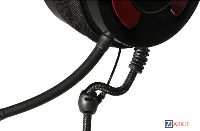Недорогая гарнитура для ПК, с выносным микрофоном и кабелем в тканевой оплетке.