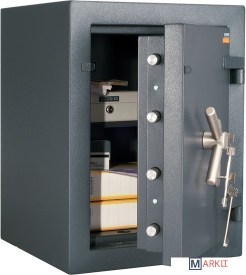 4-й класс взломоустойчивости, трехсторонняя восьмиригельная усиленная система запирания и два ключевых замка повышенной надежности – это полный «боекомплект» для защиты содержимого сейфа. Отличием данной модели является особая запатентованная многослойная защита стенок и дверцы - "сэндвич" с композиционными материалами. Закрепив сейф на полу с помощью системы анкеров, можно пресечь любую попытку злоумышленников его вынести. Внутри этого сейфа достаточно места, чтобы эргономично разместить ценные папки и бумаги.