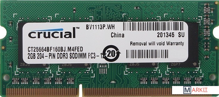 Markit » Оперативная память » Оперативная память Crucial 2GB DDR3 SO-DIMM PC3-12800 (CT25664BF160BJ)