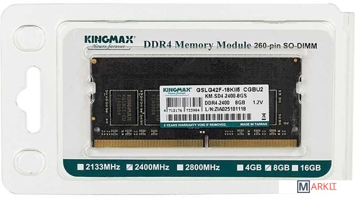 Markit » Оперативная память » Оперативная память Kingmax 8GB DDR4 SO-DIMM PC4-19200 KM-SD4-2400-8GS