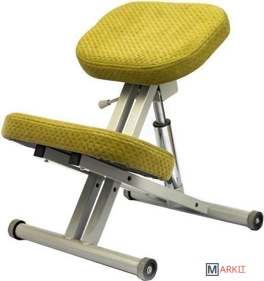 Коленный стул появился в результате наблюдений за детьми, качающимися на стульях. Наклонное сиденье позволяет пояснице принять анатомически правильное положение, не позволяя сутулиться. Упор в колени забирает на себя часть нагрузки ещё больше разгружая спину и предотвращает сползание. Благодаря использованию стула постепенно формируется правильная осанка у школьников и взрослых.- механическое колесо регулировки высоты;- четыре положения для регулировки коленной подушки;- роликовые колесики;- подходит для людей с ростом от 110 до 195 см.
