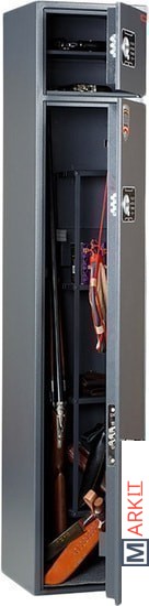 Предназначен для хранения огнестрельного оружия. - толщина металла корпуса и двери – до 2 мм- оборудован патронным отделением, запирающимся на ключ, полками и ложементами для ружей- комплектуется одним кодовым электронным замком PLS-3.2 (Промет) + двумя ключевыми замками- максимальная высота ствола 1222 мм- наличие анкерных отверстий для крепления сейфа к стене