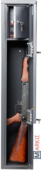 максимальная высота ствола - 978 мм;комплектуются двумя ключевыми замками;конструкция патронного отделения позволяет размещать оружие, задействуя всю высоту сейфа;наличие анкерных отверстий для крепления сейфа к стене.