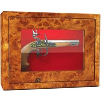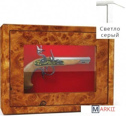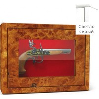 Оружейный взломостойкий сейф с боковыми стенками и застекленной дверью. Многослойное пуленепробиваемое стекло, толщина которого 22 мм, трехсторонняя ригельная система с ручным приводом. Внутренняя отделка — зеленый мокет. Предусмотрено крепление к стене и к полу.