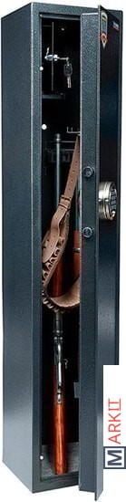 Количество стволов: 2;толщина металла корпуса – 3 мм; толщина металла двери – 5 мм;3-х сторонняя ригельная система запирания (диаметр ригеля 18 мм);оборудованы патронным отделением (трейзер), запирающимся на ключ (соответствующий 3 классу по ГОСТ Р 5089-2003 или замок не ниже класса А по ГОСТ 51053-2012), полками и ложементами для ружей, ковриком;комплектуются кодовым электронным замком PS 310/E31 (Промет);наличие анкерных отверстий для крепления сейфа к полу и стене;максимальная высота ружья 1283 мм;конструкция патронного отделения позволяет размещать оружие, задействуя всю высоту сейфа.