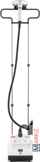 В комплекте приспособление для отпаривания воротника, доска из термостойкого пластика, тефлоновая варежка, зажим для стрелок, вешалка, щетка для бархата, 2 ворсистые щетки, сумка с логотипом.Электронный дисплей и три режима отпаривания. На электронном дисплее отображаются выбранный режим интенсивности отпаривания, суммарное время работы отпаривателя, индикатор готовности пара, индикатор низкого уровня воды, индикатор тревоги, когда вода в баке закончилась.Автоматическая намотка электрошнура. Боковые отсеки для аксессуаров. Футляр для аксессуаров. Электронное управление. Защитное отлючение аппарата.