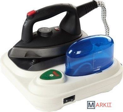 Утюг в парогенераторе MIE Stiro Non-Stop выполнен из высокоуглеродистой стали с тефлоновым напылением. Мощность утюга 800 Вт.
