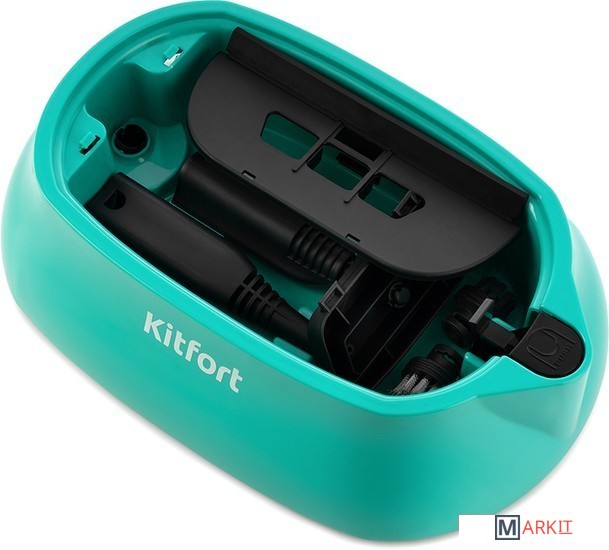 Kitfort КТ-9102 способен заменить паровую швабру, дезинфектор, стеклоочиститель, отпариватель. Горячий пар под давлением в 4 бара очищает разные поверхности, удаляет жир, известковые отложения, убивает патогенные микроорганизмы, отпаривает ткани.Скребок для стекла используется для чистки окон, зеркал, кафеля. Струйная насадка подходит для чистки плинтусов, щелей и других углов. Щётки - для удаления стойких загрязнений. С тряпкой можно отпаривать одежду, шторы, мягкую мебель.В комплект, помимо различных насадок, входят также щётка для пола, тряпка, рамка для чистки ковров, удлинительные трубки, что делает КТ-9102 максимально универсальным устройством для очистки, глажки, дезинфекции самых разных поверхностей.Управление располагается на паровом пистолете. Вращение регулятора позволяет плавно регулировать интенсивность пара. Кнопка подачи пара располагается под пальцем. Предусмотрен блокиратор от случайного нажатия или для включения непрерывной подачи пара.На корпусе есть кнопка вкл/выкл. Индикатор готовности пара загорается, когда давление пара в бойлере достигает максимального значения и гаснет, когда давление пара падает. Индикатор справа информирует об отсутствии воды.Чтобы насадки не терялись, в подставке пароочистителя можно хранить все насадки.В комплекте с пароочистителем идёт мерный стакан для удобного добавления воды в бойлер.В случае возникновения в бойлере избыточного давления предохранительный клапан, встроенный в крышку бойлера, стравит пар, пока давление не опустится до безопасного уровня.