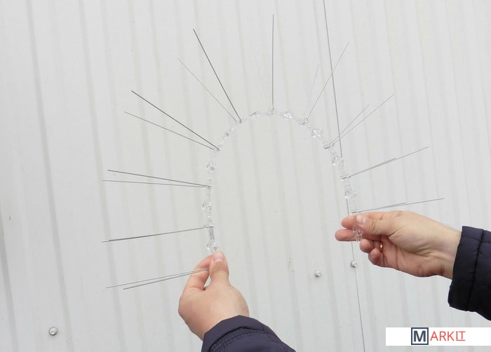 Противоприсадные шипы состоят из отдельных секций. Длина одной секции составляет 50 сантиметров. На каждой секции установлено 20 шипов высотой по 11,5 сантиметра. Шипы расположены в 2 ряда и направлены в разные стороны. Такая конструкция делает физически невозможной посадку крупных птиц, обитающих в населенных пунктах, и затрудняет присаживание большинства мелких пернатых.