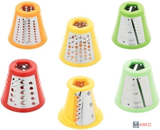 | Функции | терка, шинковка, ломтерезка, драники, приготовление мороженого |