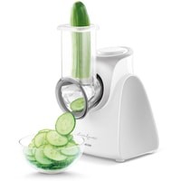 Слайсер может нарезать картофель на тонкие ломтики для жарки, либо фрукты и овощи для украшения блюд и пр.Терка с волнистыми ножами подходит для нарезки фруктов и овощей на оформление различных блюдКрупная терка используется для шинковки овощей на суп, для приготовления картофельных блинов либо овощных и фруктовых салатов и т. д.Мелкая терка подходит для приготовления фруктовых и овощных салатов либо сырных и овощных паст и т. д.Очень мелкая терка предназначена для измельчения / помола кокоса, миндаля, орехов и для приготовления крошек из твердого хлеба и т. д.