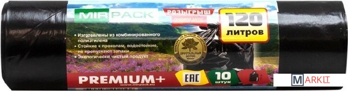 Markit » Пакеты для мусора » Пакеты для мусора Mirpack Premium+ 40 мкм 120 л (10 шт)