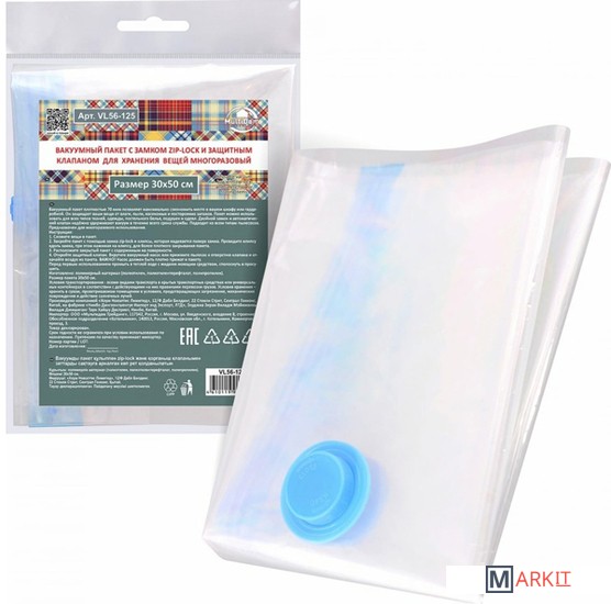 Вакуумный пакет плотностью 40мкм позволяет максимально сэкономить место в вашем шкафу или гардеробной. Он защищает ваши вещи от влаги, пыли, насекомых и посторонних запахов. Пакет можно использовать для всех типов тканей, одежды, постельного белья, подушек и одеял. Двойной замок и автоматический клапан надёжно удерживают вакуум в течение всего срока службы. Подходит ко всем типам пылесосов. Предназначен для многоразового использования.Изготовлено: пакет-полимерный материал (полиэтилен низкого давления высокой плотности, полиэтилентерефталат), клипса и защитный клапан-пластмасса (полипропилен). Размер пакета 30х50см.
