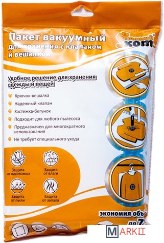 Вакуумный пакет для хранения с клапаном и вешалкой предназначен для бытового использования.Позволяет организовать компактное хранение, что экономит место.Благодаря высокой прочности пакет прослужит долгое время.Защищает содержимое от пыли, влаги, насекомых и запахов, поэтому отличается практичностью.