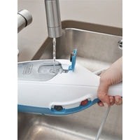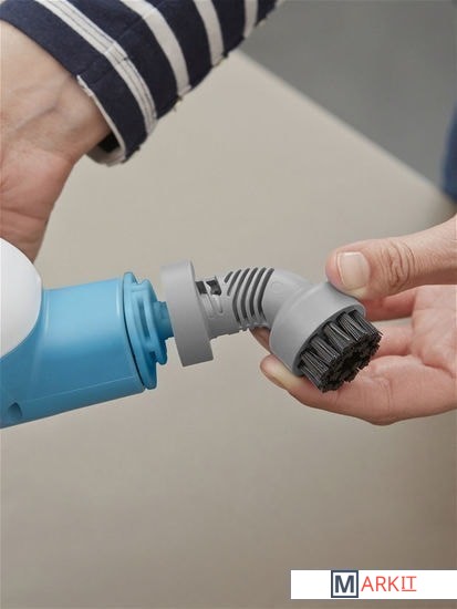Встроенный резервуар для воды оснащен внутренним фильтром предохраняющим попадание вместе с водой нежелательного мусора во внутрь нагревательного элемента.Корпус щетки легко разбирается на парогенератор, чистящую напольную головку и ручку. Такая конструкция позволяет легко хранить или транспортировать пароочиститель, а также использовать паровую щетку в качестве компактного парогенератора для очистки различных поверхностей.Система намотки кабеля на корпус щетки для максимального удобства в эксплуатации.