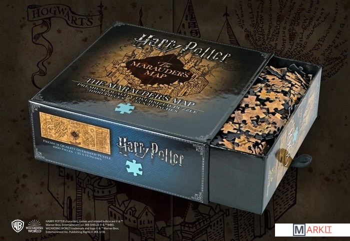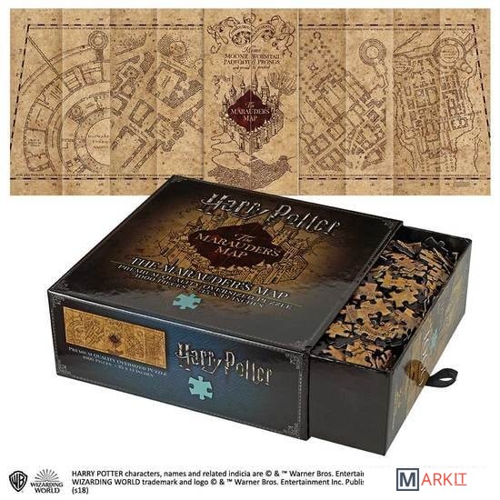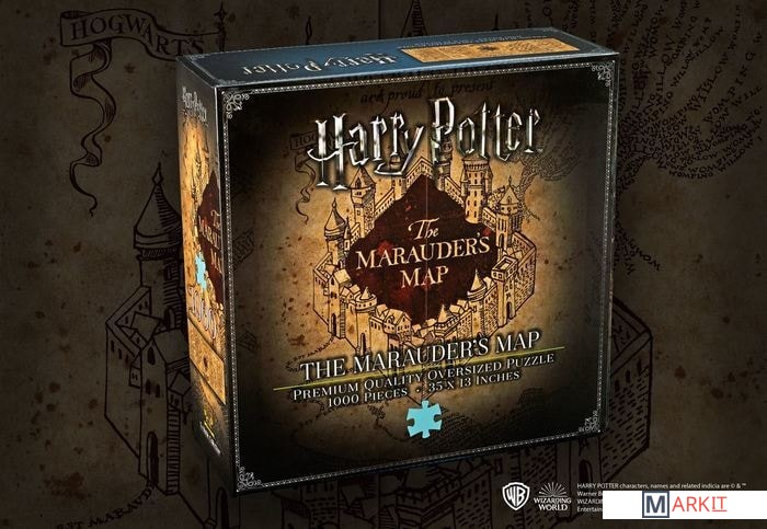 Пазл премиального качества, изображающий Карту Мародеров (весь замок Хогвартс и его ближайшие окрестности). Пазл состоит из 1 000 деталей, в собранном виде его размеры составляют 89 на 33 см. Произведено по официальной лицензии Warner Brothers.