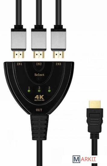 Markit » Кабели, адаптеры, разветвители » Переключатель DL-LINK 3x1 HDMI UltraHD 4K 3D с кабелем, пассивный