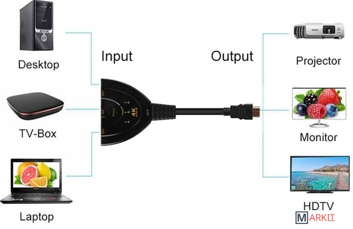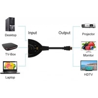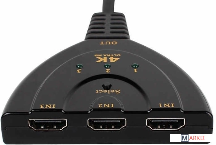 Адаптер / переключатель / свитч 3×1 HDMIUltra HD 4K/2K – для подключения до 3-х источников сигнала к одному дисплею: телевизору, монитору, проектору. Ручное переключение каналов HDMI. Адаптер подключается к большинству устройств с интерфейсом HDMI, таким как проигрыватель DVD / Blu-ray, Xbox, Sony PS3/PS4, компьютер, ноутбук, телевизионная приставка, спутниковый ресивер и др. Поддержка разрешение до UltraHD 4K/2K (3840 х 2160), поддержка 3D и цифрового звука из выбранного источника. Длина кабеля HDMI 50см. Внимание! Сплиттер является пассивным и его работа может зависеть от подключаемых к нему источников сигнала