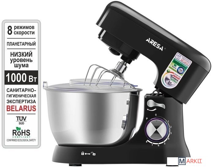 Планетарный миксер AR-1909 белорусского бренда ARESA - незаменимый помощник на кухне. В приборе установлен надежный 1000 ваттный мотор с медной обмоткой, который может выдерживать большие нагрузки. Благодаря редуктору собственной разработки прибор более тихий чем аналоги. В миксере 8 скоростных режимов и импульсный турбо-режим. В комплект входят: чаша емкостью 4,5 л из нержавеющей стали, прозрачная крышка с отверстием, которая защищает от брызг и позволяет добавлять ингредиенты в процессе работы, отделитель желтков, три насадки: венчик для взбивания из нержавеющей стали высокой прочности, крюк для замешивания теста, насадка для смешивания ингредиентов из высокопрочного ABS пластика. Их отличительной чертой от многих конкурентов является надежная конструкция крепления со стальной муфтой, что надолго продлевает срок службы прибора. Корпус миксера изготовлен из толстого и прочного ABS пластика. Пластик не окрашен - поэтому он внутри того же цвета, как и с наружи, а значит прибору не страшны царапины. ARESA – белорусский бренд бытовой техники. Наша техника проходит сертификацию на территории Республики Беларусь в едином центре ГОССТАНДАРТА. Кроме сертификатов таможенного союза, полученных на территории Республики Беларусь, техника ARESA соответствует всем нормам сертификации Европейского Союза и поставляется на его территорию. Приобретая нашу технику, вы заботитесь о здоровье и безопасности вас и ваших близких.