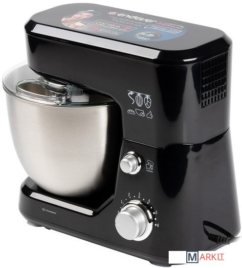 Планетарный миксер.Съемная чаша с крышкой.Насадка для перемешивания.Крюк для теста.Венчик для взбивания.Лопатка кулинарная.Руководство по эксплуатации.Гарантийный талон.