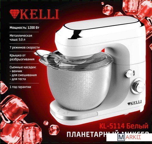 Markit » Кухонные комбайны, машины и планетарные миксеры » Планетарный миксер KELLI KL-5114 (белый)