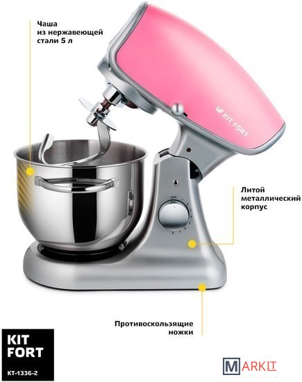 Markit » Кухонные комбайны, машины и планетарные миксеры » Планетарный миксер Kitfort KT-1336-2 (розовый)