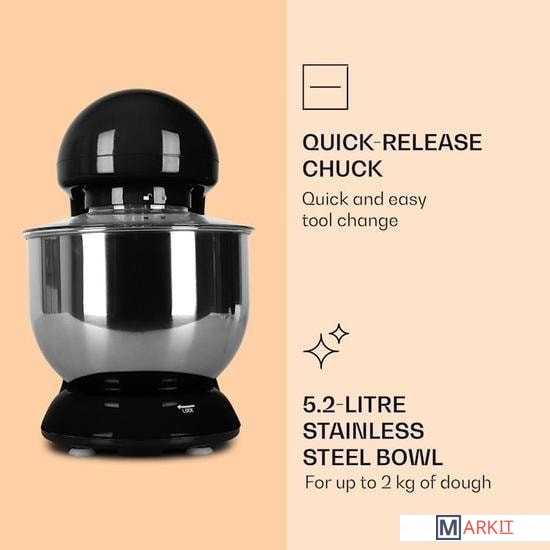 Кухонный комбайн, чаша из нержавеющей стали, крючок для замеса, смеситель, взбиватель для пены, руководство пользователя на немецком и английском языках