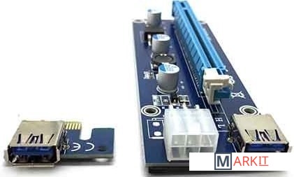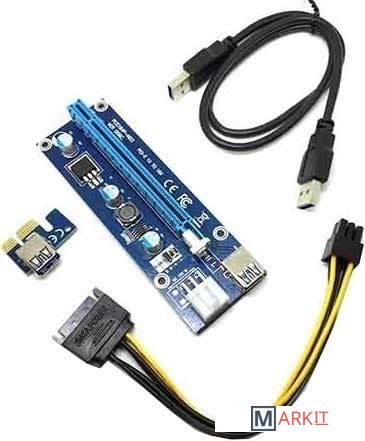 Переходник предназначен для подключения устройств с интерфейсом PCI-Ex16(например видеокарты) в слот PCI-Ex1.1x PCI-E 16X адаптер1 х PCI-E 1X riser плата1x USB3.0 кабель1x SATA15Pin-6Pin кабель Питания