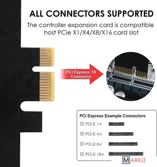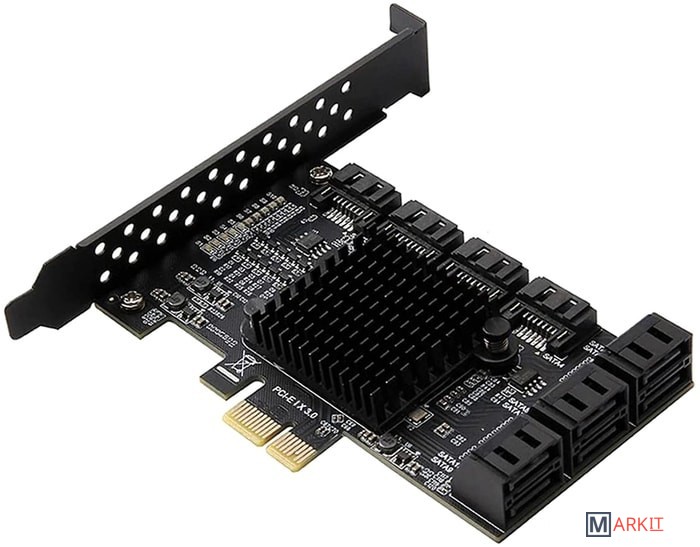 | Разъемы | SATA, PCI Express (PCI-e x1 2.0 -> 10x SATA 3) |