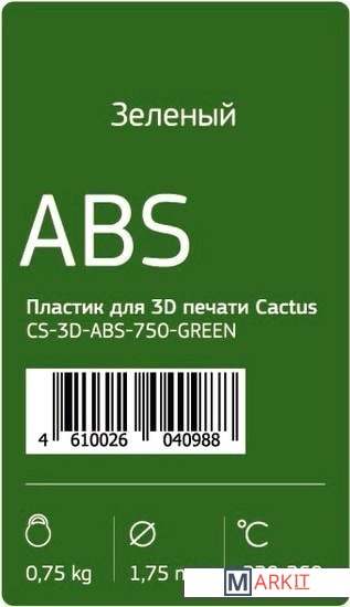 Markit » Расходные материалы для 3д принтера » Пластик CACTUS CS-3D-ABS-750-GREEN ABS 1.75 мм