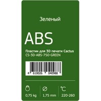 Пластик CACTUS CS-3D-ABS-750-GREEN ABS 1.75 мм Код: 57556
