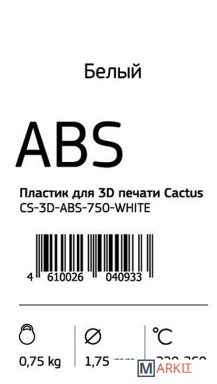 Markit » Расходные материалы для 3д принтера » Пластик CACTUS CS-3D-ABS-750-WHITE ABS 1.75 мм