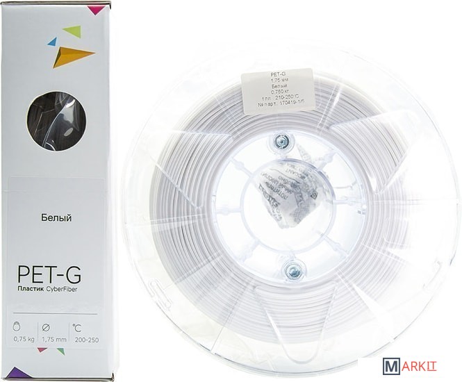Markit » Расходные материалы для 3д принтера » Пластик CyberFiber PETG 1.75 мм 750 г (белый)