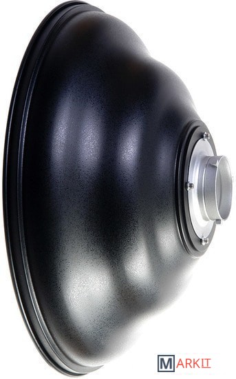 Новая высокоэффективная форма рефлектора, диаметр 56 см (22"), байонет Bowens (сменный, 152 мм), материал - алюминий, белая внутренняя поверхность, регулируемый дефлектор, комплектуется сотовой насадкой и рассеивателем.