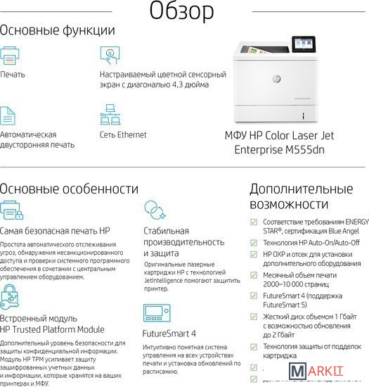 - 4 предустановленных картриджа- модуль сбора тонера- кабель питания- документация |