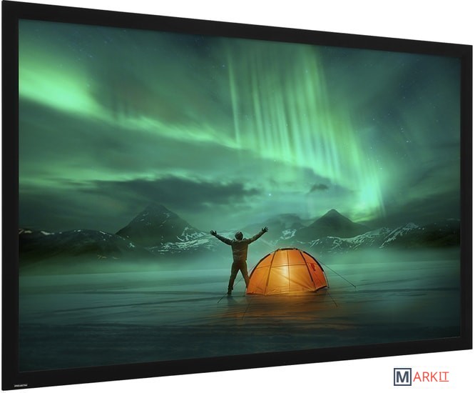HomeScreen Deluxe - это фиксированный рамочный экран с черной бархатной рамкой, а также новейшие технологии в проекционных поверхностях, предназначенные для 4K и Ultra HD, чтобы максимально использовать технологию вашего проектора. Большая стандартная черная рамка дает глазу точку отсчета.