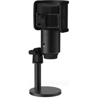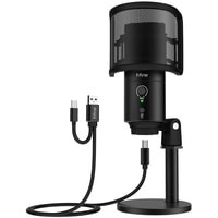 Компактный конденсаторный USB-микрофон в металлическом корпусе. Микрофон оснащен кнопкой включения/выключения со светодиодной индикацией и выход на наушники. Подходит для озвучки и потокового вещания. В комплект поставки входит подставка-тренога и поп-фильтр. Совместим с операционными системами системой Windows и MacOS, а также с PlayStation и смартфонами с разъемом USB Type-C.