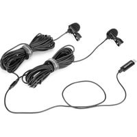 Два петличных микрофона с возможностью подключения по одному кабелю.