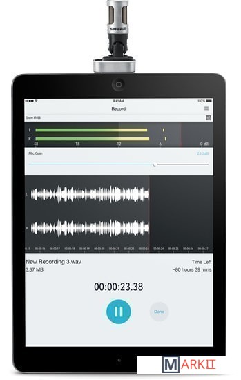 Shure MV88 – цифровой стереофонический микрофон для iOS-устройств. Новинка предназначена для работы исключительно с устройствами на iOS 7.0+, оснащёнными разъёмом Lightning. Изделие реализовано в полностью металлическом корпусе и имеет шарнирное крепление, позволяющее изменять угол наклона микрофона.