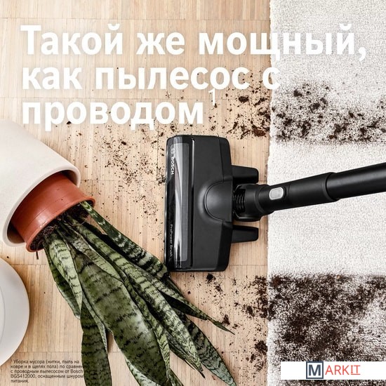 Мощная и тщательная уборка: производительность на уровне проводного пылесоса Турбощетка ProPower с LED подсветкой: интегрированные светодиоды для тщательной уборки на любом напольном покрытии Больше мощности с аккумулятором емкостью 5 А·ч: такой же мощный, как и пылесос с проводом для обеспечения качественной уборкиМотор TurboSpin из Германии: мощный, быстрый и легкий двигатель для высокого качества уборки Продление времени работы: дополнительный аккумлятор позволит продлить время работы пылесоса. (Приобретается отдельно)