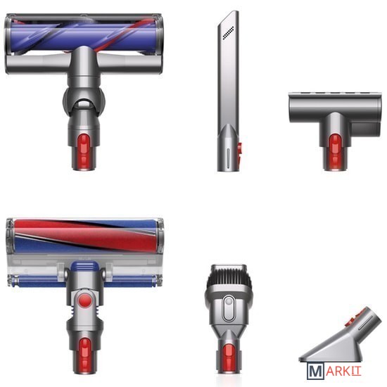 Насадки в комплекте: - насадка с мягким роликом;- насадка с прямым приводом;- мини-электрощетка;- комбинированная насадка;- щелевая насадка;- щетка с мягкой щетиной.