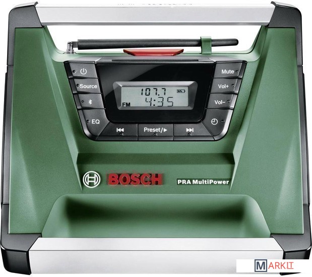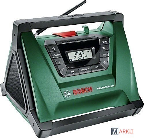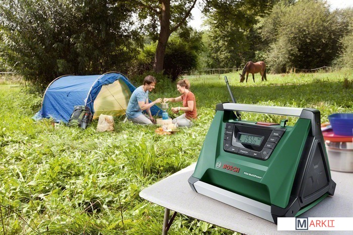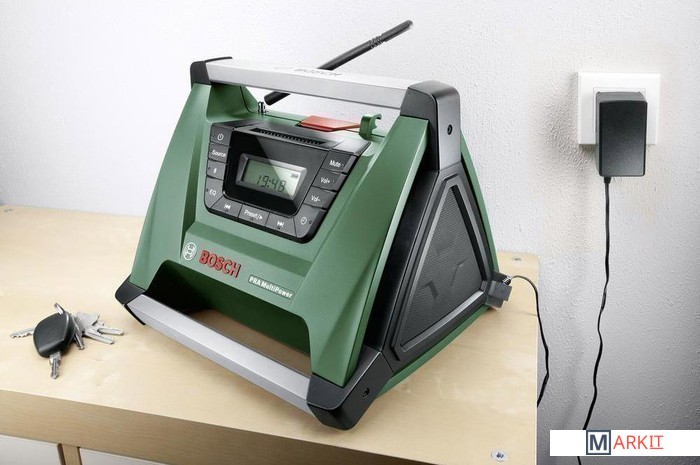 Портативный радиоприемник может использоваться как при проведении ремонтных работ, так и на досуге. Он может питаться от любой батареи Bosch, включая модели 10.8, 14.4 и 18 В, поддерживает проводное и беспроводное подключение к смартфонам и плеерам, имеет несколько ручек для удобной переноски и крепления.
