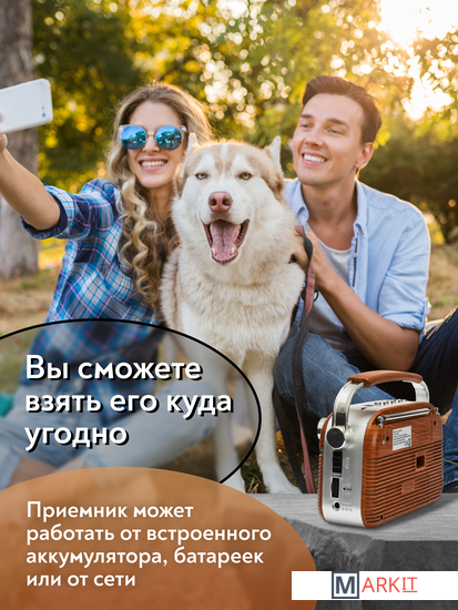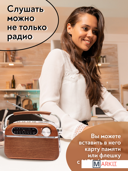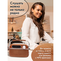Радиоприемник MIRU SR-1007 коричневого цвета имеет ретро дизайн, простой функционал и обеспечивает приём сигналов в диапазоне FM, AM и SW. Аналоговый способ настройки частоты предполагает более точное и быстрое улавливание нужного канала. Для улучшения качества сигнала у радиоприемника имеется поворотная телескопическая антенна. Радиоприемник SR-1007 может работать как от сети 220В, так и от двух батареек типа R20(D). Устройство оснащено удобной, складывающейся ручкой, благодаря чему его будет легко переносить. Органы регулировки громкость и смена диапазонов расположенны на боковой панели приемника. Также предусмотрено проигрывание с USB и microUSB накопителей. Данный радиоприемник отлично подойдет для туристов, дачников и просто любителей отдыха на природе.