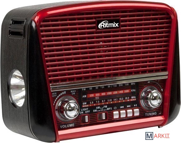 Ritmix RPR-050 – портативный трёхдиапазонный радиоприёмник, охватывающий в том числе и FM-диапазон. Дополнительная функция RPR-050 – воспроизведение mp3-файлов с карт памяти или USB-флэшки. Устройство снабжено встроенным фонарём повышенной яркости.